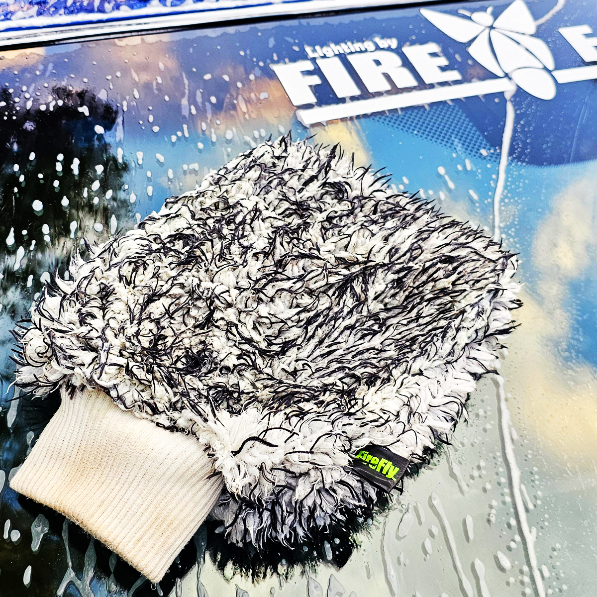 FireFly USA proudly presents our premium flexible wash mitt, which outperforms competitors in both quality and adaptability. Unlike rigid or inferior alternatives, our mitt boasts exceptional absorbency and flexibility, enabling access to hard-to-reach areas that stiffer mitts struggle with.
